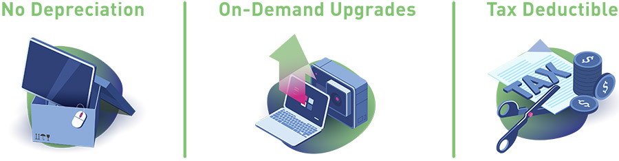 Replace the capital-intensive expenditure for ICT equipment with affordable monthly rental fee. It also allows your business to conserve cash flow for investment in other business segments.